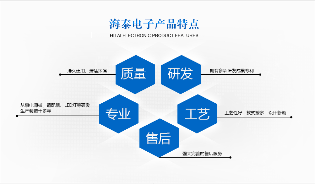 威海海泰電子有限公司成立于2003年(原威海雙豐通訊設備有限公司),是一家致力于開關電源、LED電源、電源適配器、手機充電器、醫(yī)療電源等自主研發(fā)、生產(chǎn)和銷售為一體的高新技術(shù)企業(yè)。公司秉承 “以顧客為中心”的宗旨,堅持“以人為本、質(zhì)量至上 、節(jié)能降耗、清潔環(huán)保、持續(xù)改進 ”的質(zhì)量和環(huán)境方針,科學高效的組織生產(chǎn),不斷的提高產(chǎn)品質(zhì)量。先后通過了ISO9001質(zhì)量管理體系認證、GJB9001C質(zhì)量管理體系和GJB3001C質(zhì)量管理體系和ISO14001環(huán)境管理體系認證。